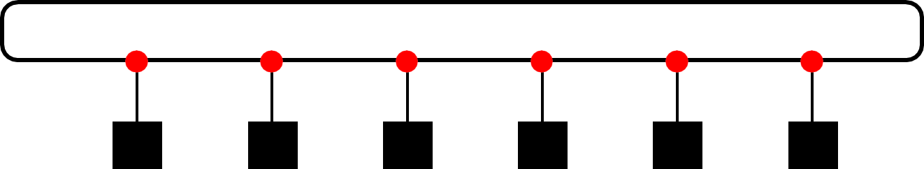 - Nodes (often depicted as black squares) represent processor-memory pairs.