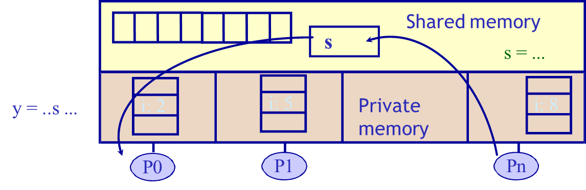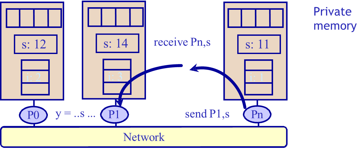 - Alternatively, a system may use distributed private memory alongside explicit message passing.