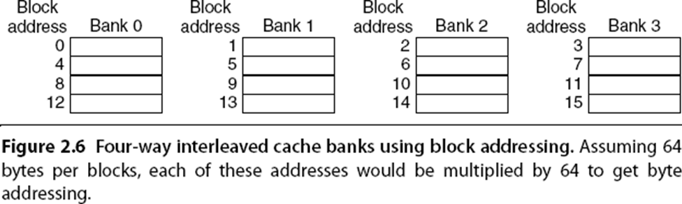 A related design technique is the use of multibanked caches, which aim to improve bandwidth and parallelism in memory accesses. By organizing the cache into independently accessible banks, the system can support multiple simultaneous accesses, increasing throughput without necessarily increasing associativity in the traditional sense. Banks are typically interleaved based on block addresses to ensure a uniform distribution of accesses.