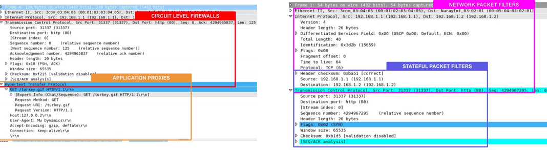 - Circuit level firewalls (transport-application), don’t exist anymore