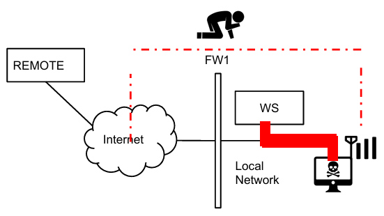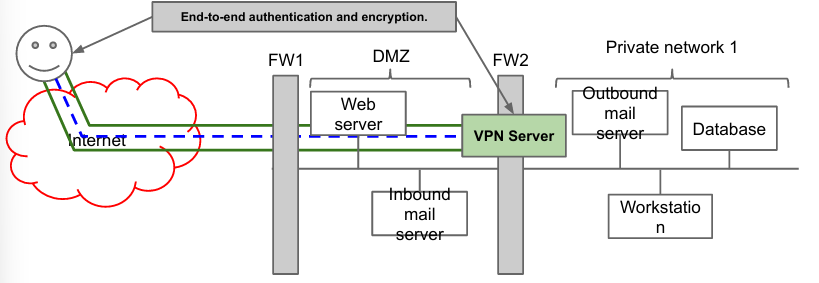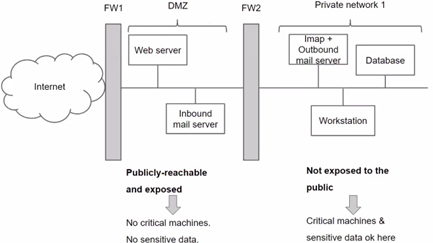 In most cases, the perimeter defense works on the assumption that what is “good” is inside, and what’s outside should be kept outside if possible: this is the castle approach. However, there are two counter examples: the access to resources from remote (i.e., to a web server, to FTP, mail transfer) and from remote users to the corporate network. This approach is not always valid in real world. However, if we mix externally accessible servers with internal clients, we lower the security of the internal network, because internal network is exposed to external access (attackers).