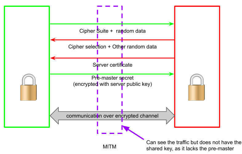 Client and server need to exchange random data to avoid replay attacks. But is TLS Resistant to MITM? MITM could: