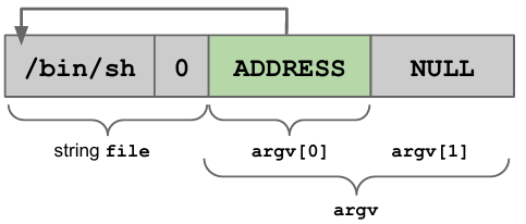 /bin/sh). - memory that can be controlled: the buffer itself or some other variable, in this case the vulnerable buffer is overflowed by overwriting everything until