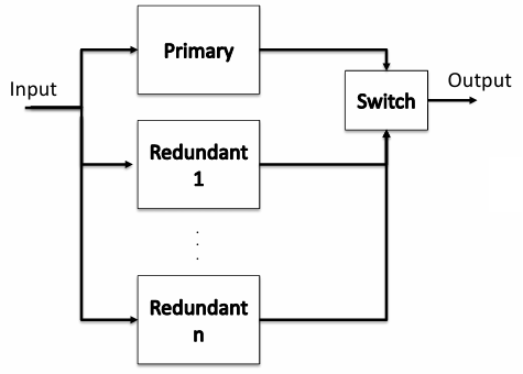 A system may be composed of two parallel replicas: the primary replica working all time, and the redundant replica (generally disabled) that is activated when the primary replica fails.