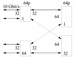 , where is the number of servers and is the number of ports), the rack has 40 ports at 1 Gbit/s to the servers and 4 ports at 10 Gbit/s to the other switches.  - With oversubscription (