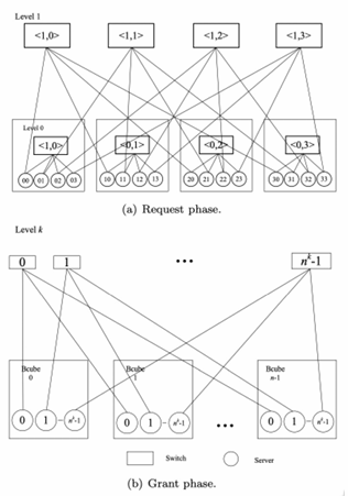 - BCube: a hybrid and cost-effective architecture that can scale up through recursion.