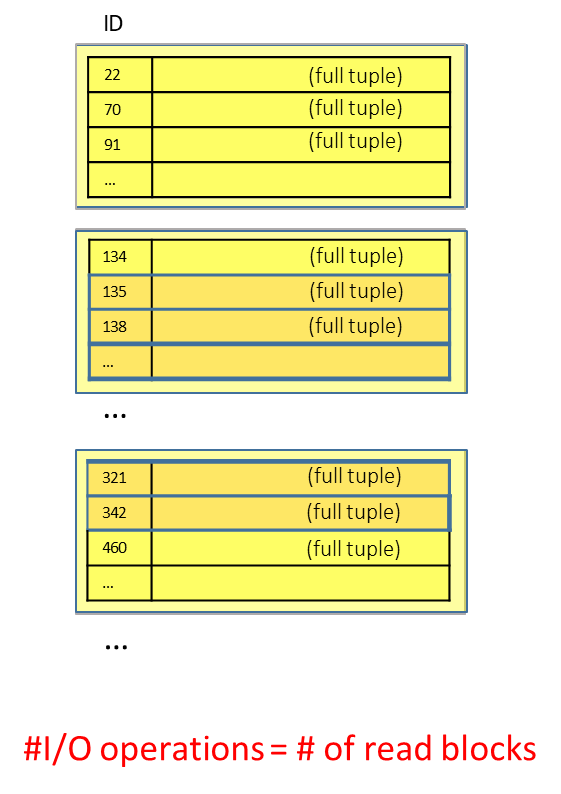 SELECT * FROM Student WHERE Student.ID BETWEEN '135' AND '380', only the blocks containing records within that range need to be accessed.