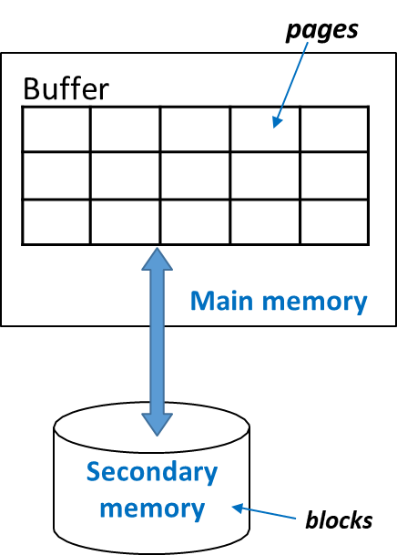 - Buffering: Storing recently accessed pages in main memory so that future accesses can be served without performing additional I/O.