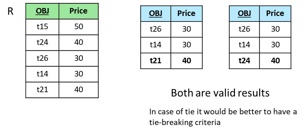 Ranking Queries: Focus on retrieving the top- objects from a dataset according to a scoring function or proximity to a target (e.g., -nearest neighbors). These queries are essential in applications like search engines, e-commerce, and recommender systems, where users seek the most relevant or preferred results rather than exhaustive listings. Ranking queries can be based on single or multiple attributes, and may involve complex joins across multiple tables.