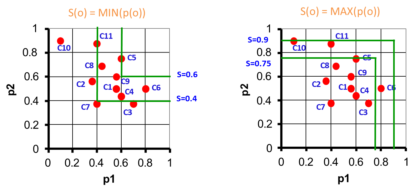 In contrast, skyline queries identify a set of non-dominated objects—those that are not outperformed by any other object in all criteria.
