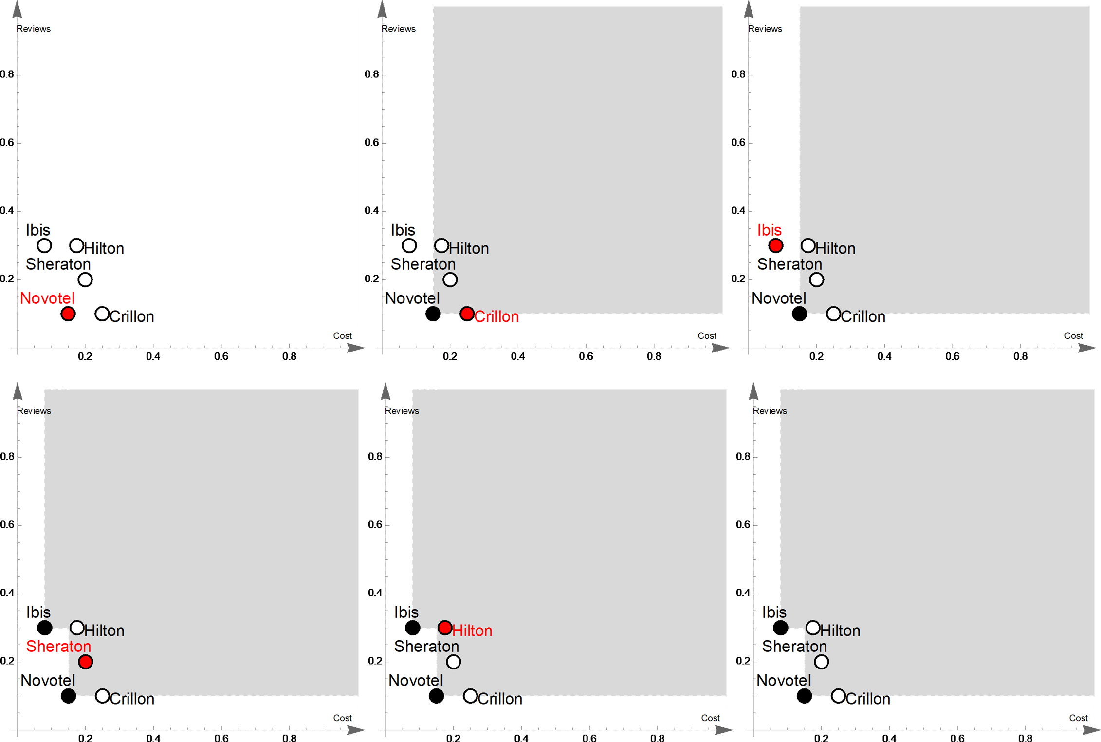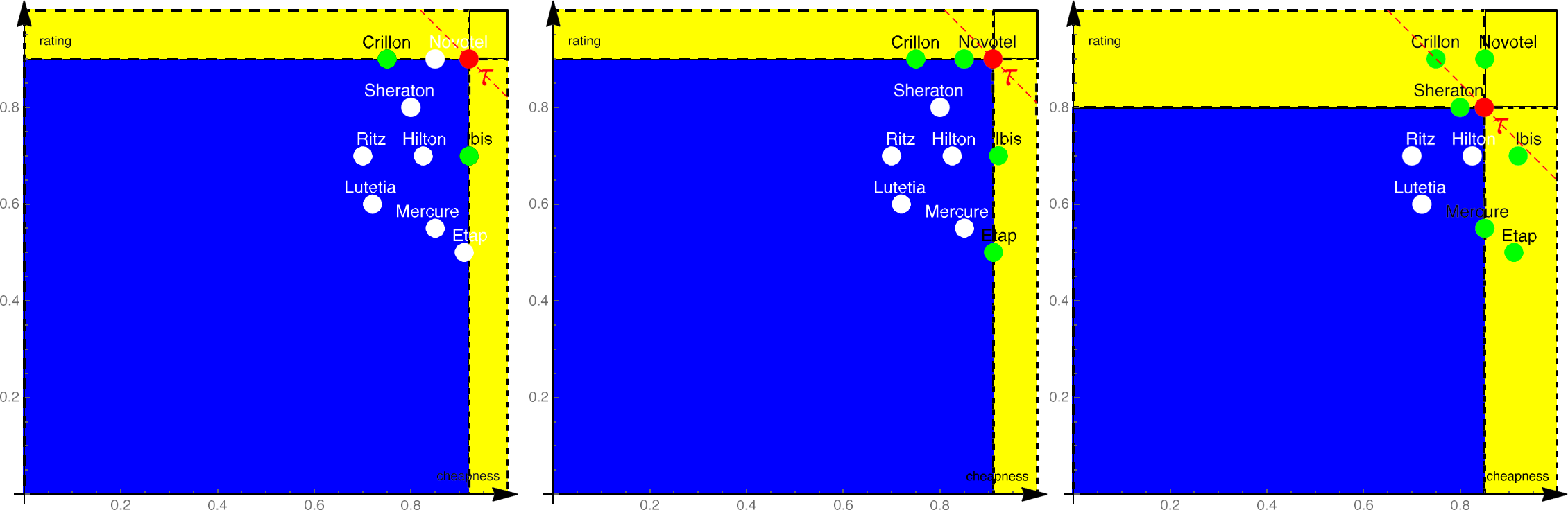 Consider again the example of hotels in Paris. Using SFS, we can efficiently compute the skyline by first sorting the hotels based on their price and their complaints.