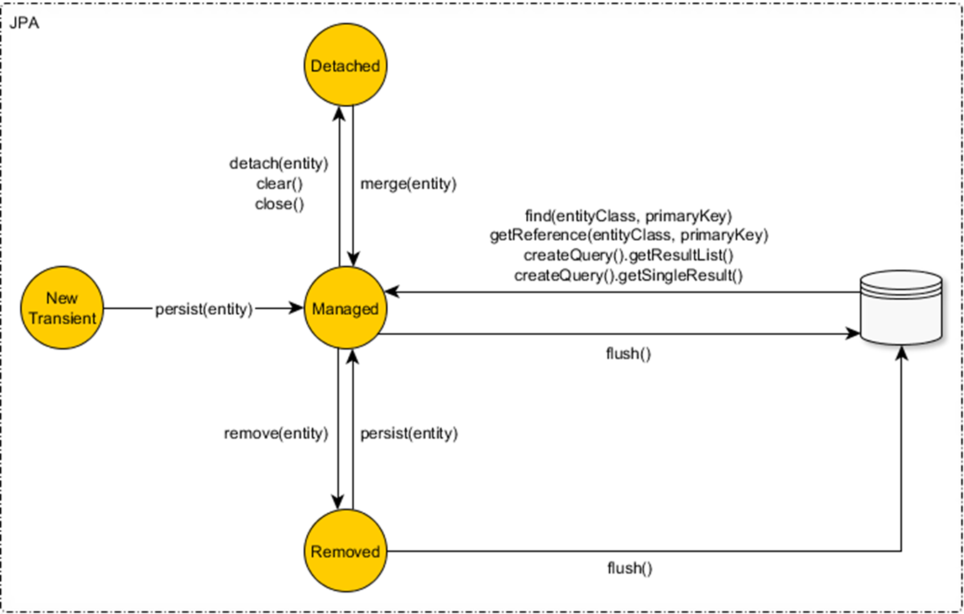 When the Entity Manager begins managing an entity, it transitions to the MANAGED state. In this state: