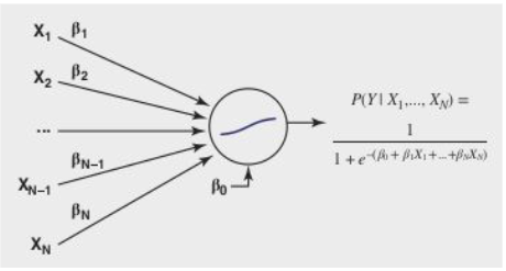 Interestingly, logistic regression can be viewed as a neural network with a single neuron and a sigmoid activation function. The neuron performs two operations: it takes the inputs and multiplies them with the corresponding weights (including the intercept term), and then applies a nonlinear transformation using the sigmoid function.