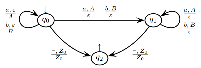 Stack Emptiness Test: The automaton can check whether the stack is empty. This test returns true if there are no symbols on the stack (except for the bottom symbol ); otherwise, it returns false.