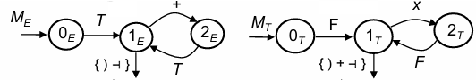 State 2T: After processing an E procedure call, it expects a closing parenthesis ) and proceeds accordingly.