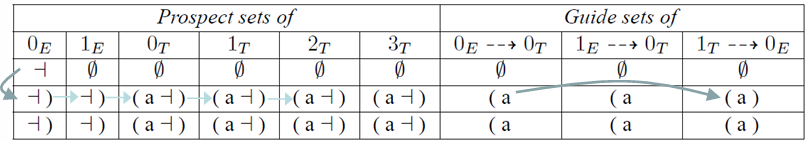 Transition and lead to the prospect set for state and propagate the prospect set from .