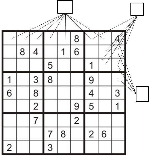 for each empty square. A single value for pre-filled squares. - Constraints: A 9-way