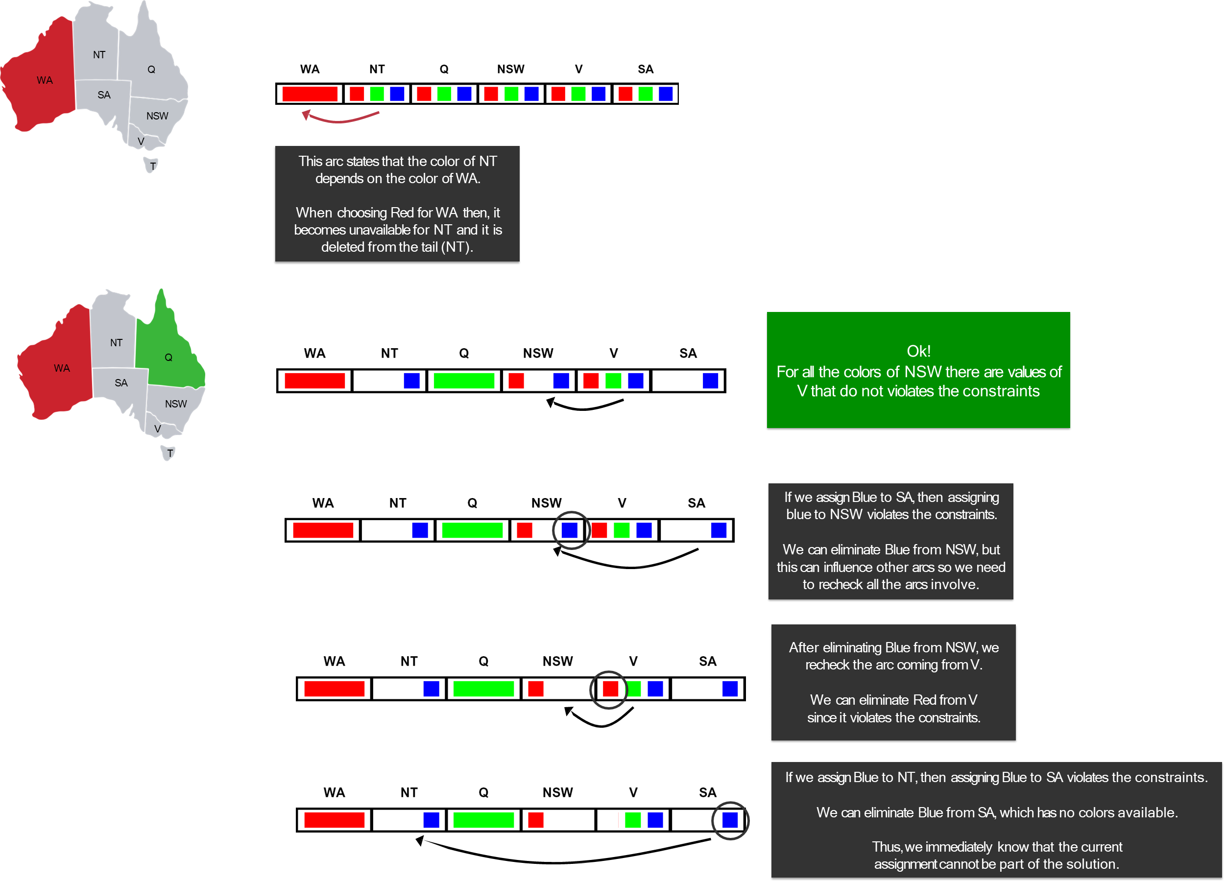 becomes , becomes , becomes . - AC-3: Checks arcs.