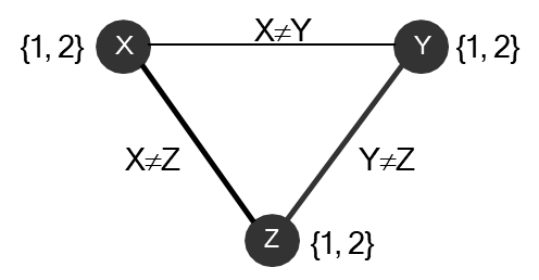 This type of inconsistency can only be found by looking at groups of three variables at a time. This leads to the idea of k-consistency.