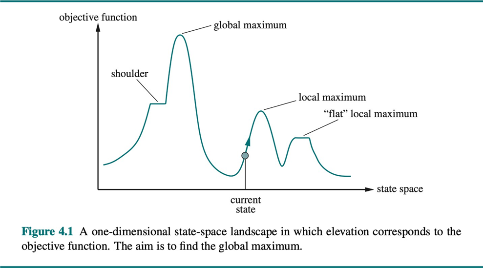 - Local Optima: These are states that are superior to all their immediate neighbors but are inferior to the global optimum. A simple hill-climbing algorithm, upon reaching a local optimum, will terminate, as it has no incentive to make a move that would temporarily worsen the objective value.