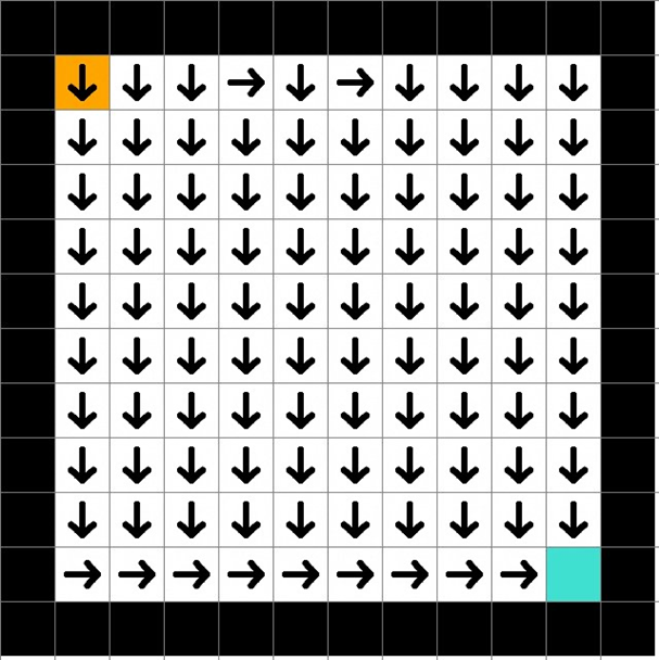 This policy is far more robust than the single plan found by the search algorithm. If the agent were dropped into any empty square, it would instantly know the best direction to move to reach the goal.