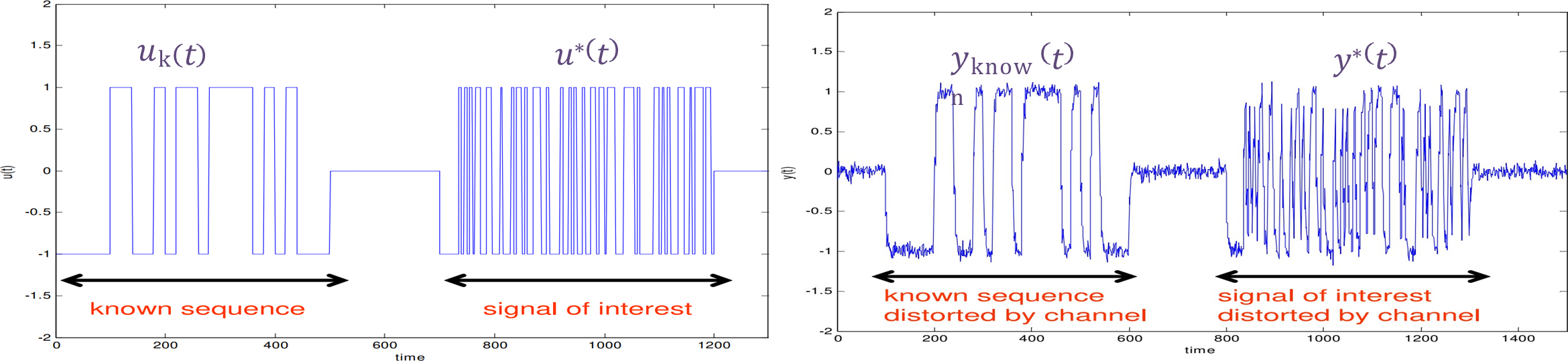. The key idea is that the signal of interest, denoted , is preceded by a known signal , which is transmitted at the start of the communication. Both (the signal of interest) and (the known signal) are affected by the transmission channel, but since is known, it can be used to identify the channel model.