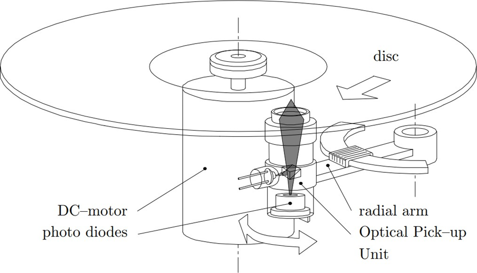 The objective of this example is to position the laser head of a CD player onto the correct track using a mechanical arm. The system we are concerned with involves controlling the current