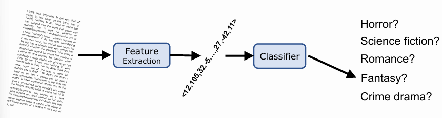 Given an arbitrary long text, it cannot be given directly to a model. The text must be converted into a fixed-length vector of numbers, by passing through a feature extraction process; then, a classifier can be trained on these vectors in order to find the features that best predict the class of the text.