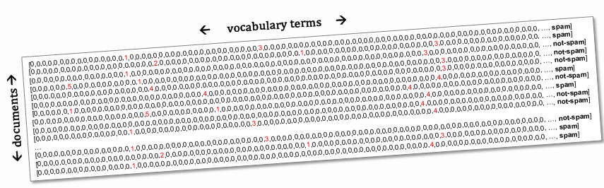Finally, we can estimate the probability from the training data, by counting the number of times each word appears in the spam and not spam emails, and then normalizing the counts to get the probabilities.