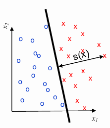LR uses linear model (distance from hyperplane) to predict the log-odds: