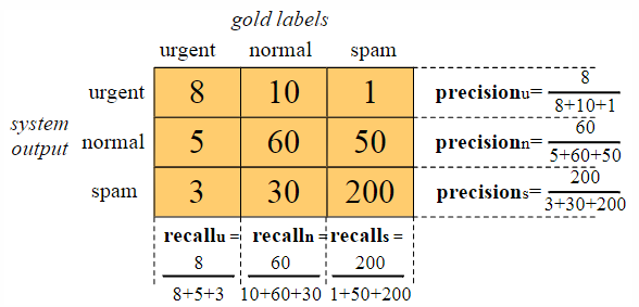 - Macroaveraging: Calculate the performance (precision and recall) for each class individually, and then take the average across all classes.