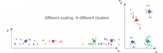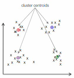 centroids randomly (re)assign each data point to the closest centroid using the formula: