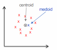 The medoid is one of the data points in the datasets, and it’s the point that is the closest (smallest average distance) to all the other points in the cluster.