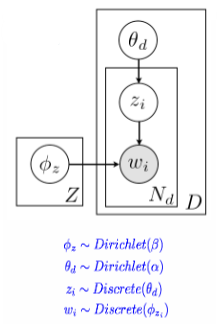- For each position in the document, a topic is chosen based on the document proportions, and a word is chosen based on the topic proportions.