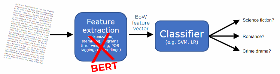In traditional text classification, the initial step is to determine the types of features to extract from the text (such as