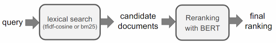 By combining the efficiency of lexical search with the accuracy of BERT, you can achieve a final ranking of the documents that best match the query.