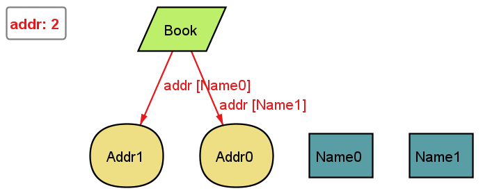 In this example, addr links Book entries with corresponding Name and Addr entities.