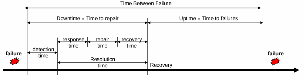), which measures the average time from when a failure occurs to when the system is back online, encompassing downtime duration.  - Mean Time to Failures (