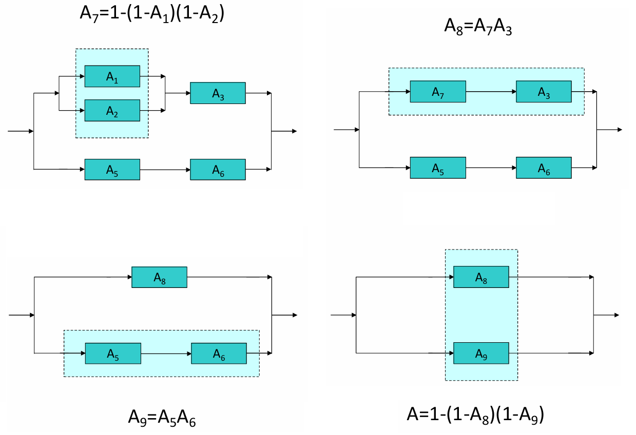 To effectively calculate availability, systems are often modeled as interconnected elements in series and parallel: