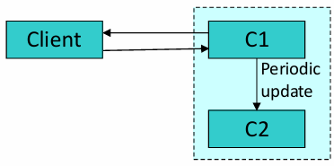 operates as the primary component, and is partially updated at regular intervals. In the event of ‘s failure, will require some additional time to synchronize and fully take over operations. Although this strategy involves a brief delay, it reduces resource consumption compared to the hot spare approach.