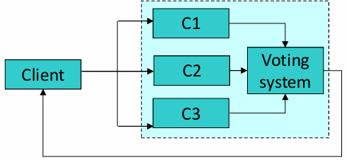 , , and ), all performing the same tasks simultaneously. In TMR, the output is determined by a majority vote, providing high fault tolerance and availability. This tactic is highly effective in critical systems where reliability and availability are both priorities, as it allows the system to continue functioning accurately even if one component fails.