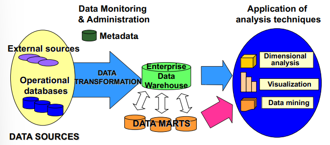 Data stored in the EDW and data marts can be accessed through various analytical techniques. Some key analysis methods include: