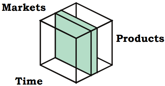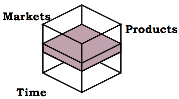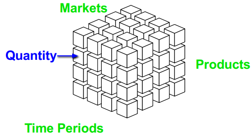 Markets: The market dimension represents different geographical or demographic markets where the products are sold. This can include various levels of granularity, such as individual stores, cities, regions, or larger market areas.
