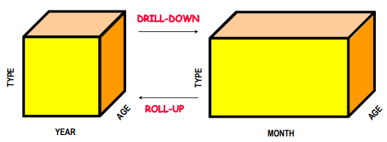 Drill-Down: The drill-down operation de-aggregates data, allowing users to examine it at a more detailed level. For instance, if a user wants to analyze sales for a specific product category and region, they might drill down to see daily sales figures. This operation helps identify trends and patterns that may not be visible at higher aggregation levels.