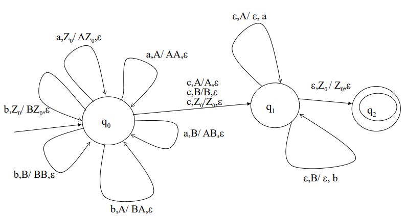 do not read anything but simply perform a popofand a pushof. This move is called -move (or spontaneous move). The symbol is overloaded: used as an additional input symbol but it’s not a symbol: .