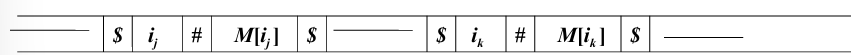 If does not exist on the tape, the Turing machine must “make a hole” (allocate new space) using the service tape and store the value in the appropriate part of the tape that corresponds to .